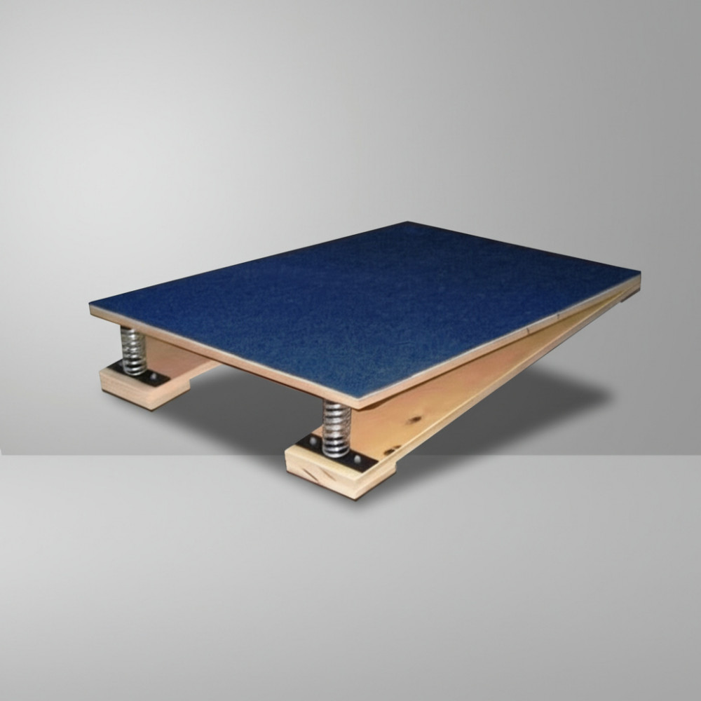 Мостик изготовлен из многослойной березовой фанеры толщиной 18 мм. Платформа мостика покрыта ковролином, что препятствует скольжению ног во время прыжков. Размеры изделия составляют 1200х600х185 мм. Верхняя поверхность покрыта ковролином, который обеспечивает хорошее сцепление, не дает скользить. Такой вид оборудования подходит для использования в школьных спортзалах. Оснащен двумя пружинами из закаленной стали.