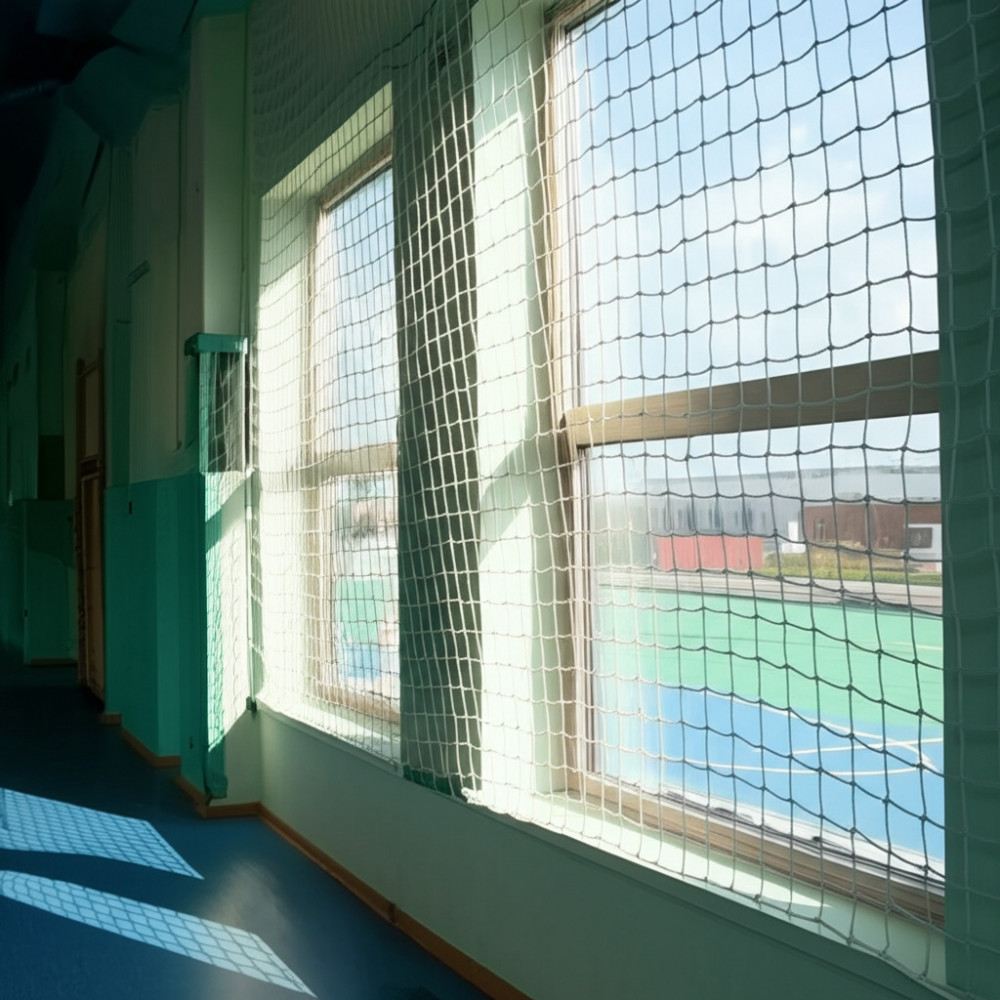 Такая сетка для спортивных площадок с оверлоком обладает весьма эстетичным видом в сочетании с легким монтажом и доступностью для защиты детских площадок, спортивных залов и широким применением в бытовых условиях.