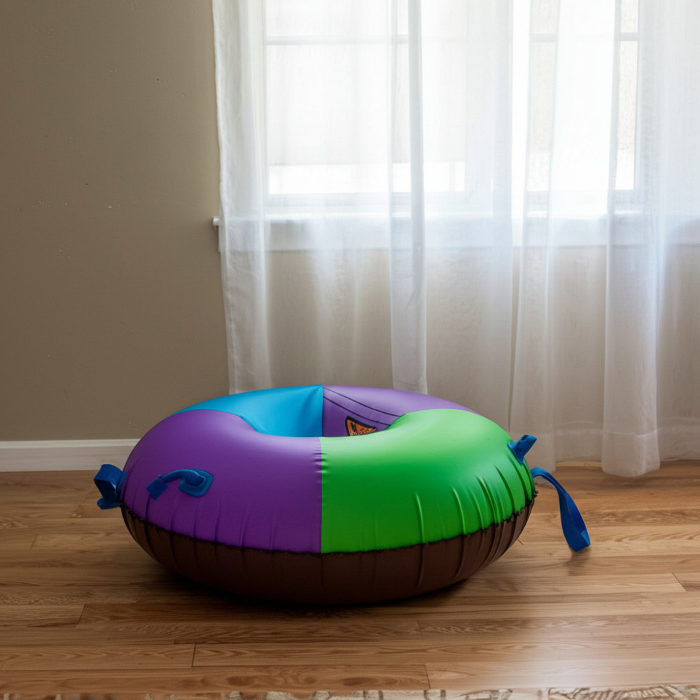 Сноутьюб V76 СТАНДАРТ-ЛЮКС малый с сиденьем - это безопасный и комфортный тюбинг диаметром 65 см, предназначенный для детского и взрослого катания с максимальной нагрузкой до 95 кг.