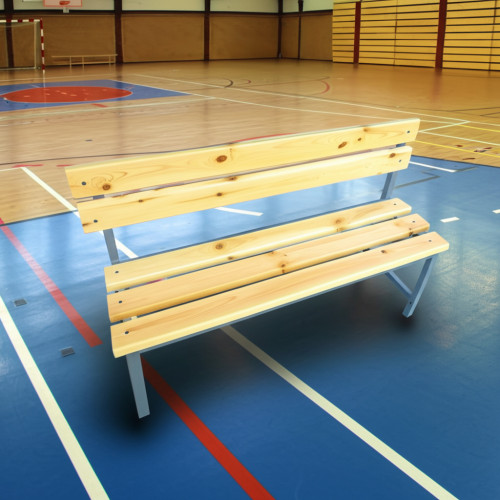 Скамейка со спинкой для раздевалок длиной 1,5 м, изготовленная из качественных материалов для обеспечения прочности и долговечности.