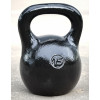 Чугунная гиря весом 16 килограммов, выполненная из чистого чугуна и покрытая полимерным составом черного цвета.