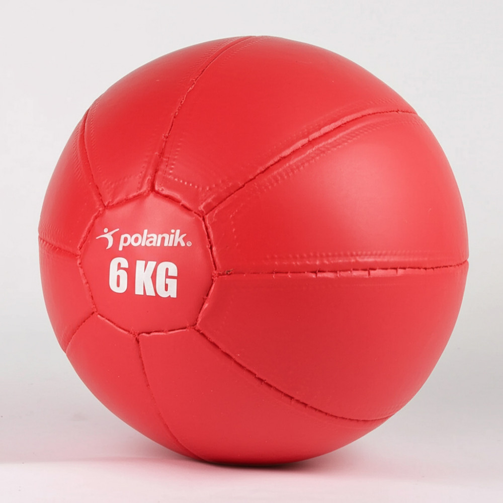 Медицинбол весом 6 кг, изготовленный из искусственной кожи, идеально подходит для силовых тренировок и реабилитационных упражнений.
