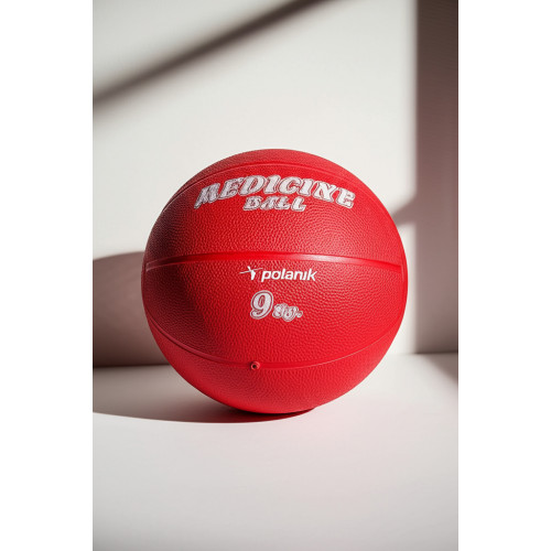 Медицинбол 9 кг от бренда Polanik, выполненный из резины, диаметром 20 см, идеален для реабилитационных и силовых тренировок.